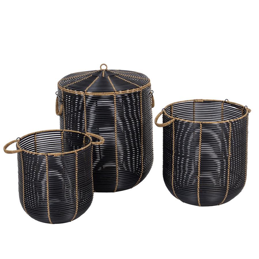 PANIER ROND NOIR/BAMBOU