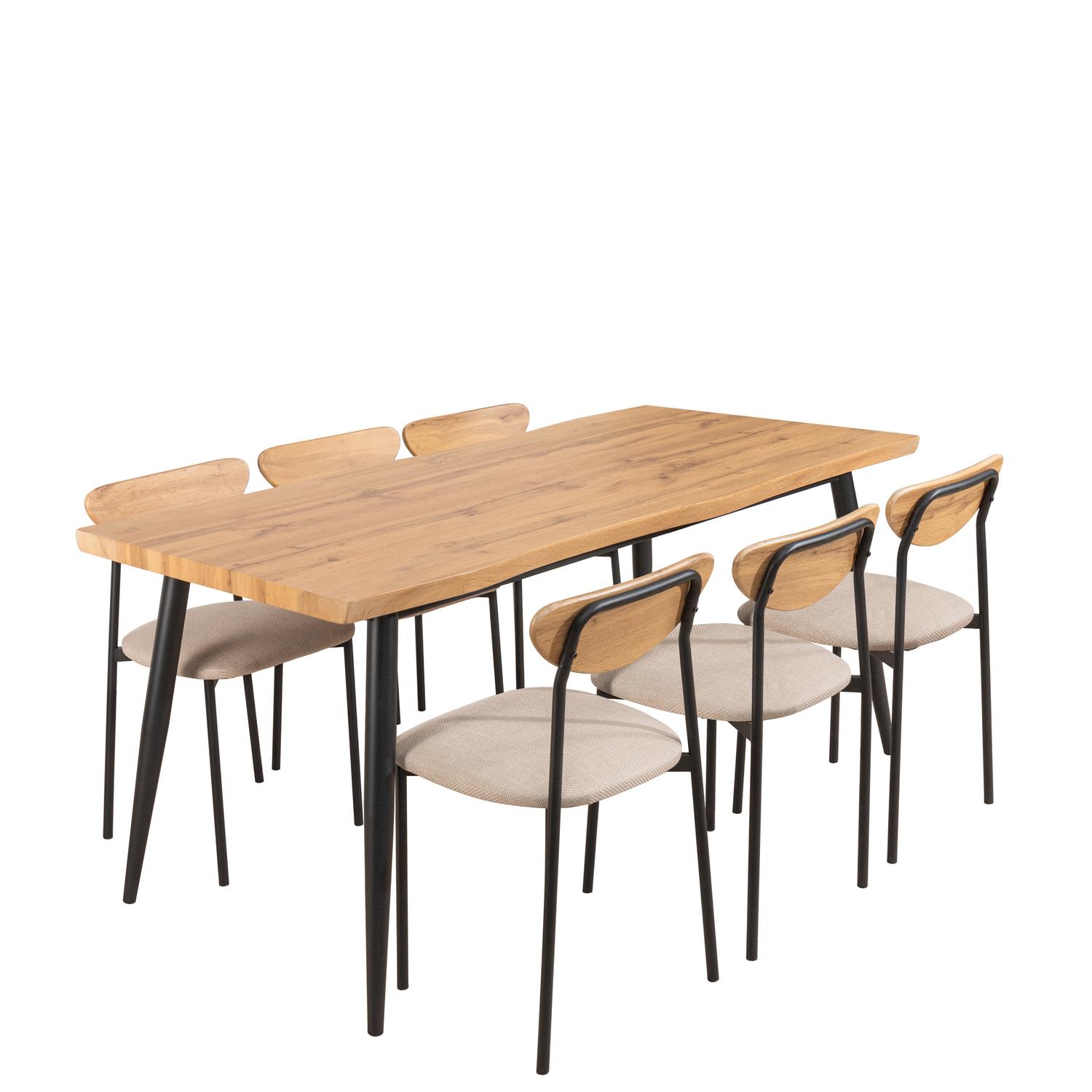 TABLE ET 6 CHAISES BOIS CLAIR